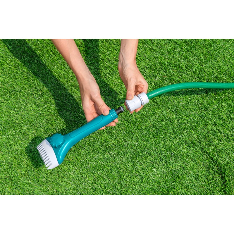 S Flowclear™ AquaLite™ značky Bestway® je čištění filtrační vložky hračkou. Jedinečný hřebenový tvar čisticího nástavce je navržen tak, aby se mohl dostat hluboko do jemné lamelární struktury filtračního papíru. Těžko dostupná místa uvnitř filtrační vložky již nejsou problémem. Nástavec lze pomocí rychlospojovacího ventilu připojit na běžnou zahradní hadici, čímž se z filtračního papíru odstraní ještě více částic nečistot.