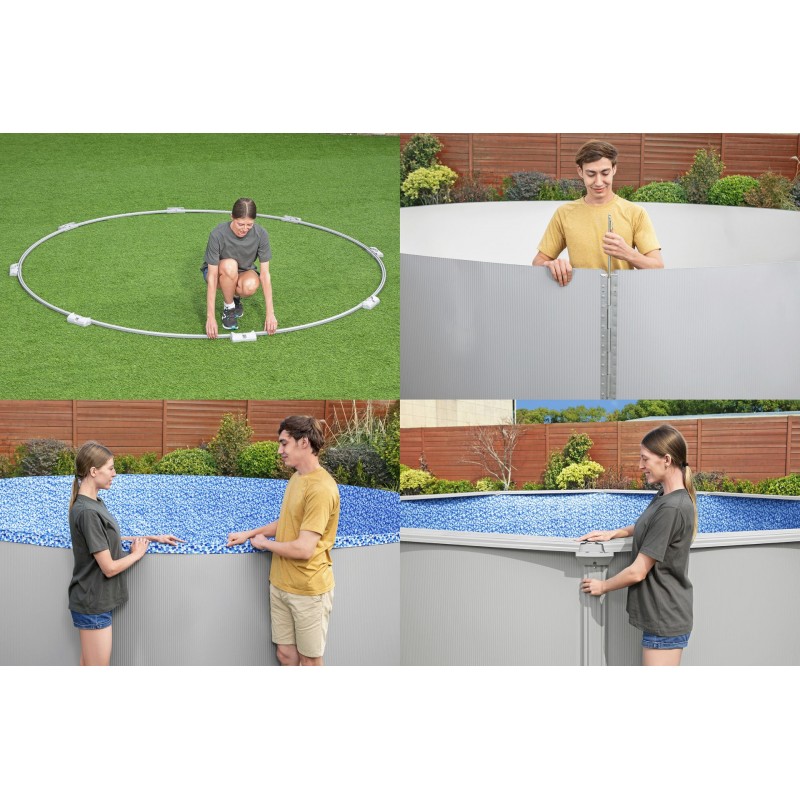 - Bazén lze snadno sestavit na pevném rovném povrchu, lze ho nechat sestavený po celý rok