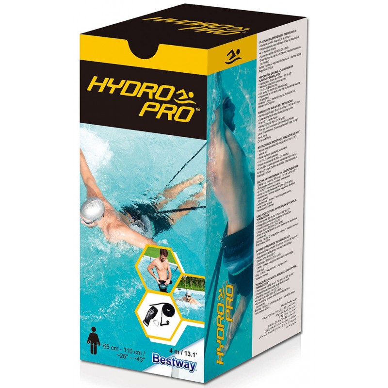 Bestway Hydro-Pro je plavecký trenažér, který vám pomůže se zlepšováním stylu plavání a fyzické kondice dokonce i ve velmi malých bazénech. Upevněte jej za pevný rám bazénu a bez čekání začněte s tréninkem. Balení obsahuje elastický pás o délce čtyři metry, nastavitelný polstrovaný pásek se sponou a dvě nastavitelné spony. Svou velikostí se trenažér hodí pro ženy i muže s obvodem pasu 65 až 110 cm. Elastický pas z kvalitního a odolného materiálu zůstane dlouhodobě pružný, aby vám trenažér vydržel bezvadně funkční dlouhá léta.