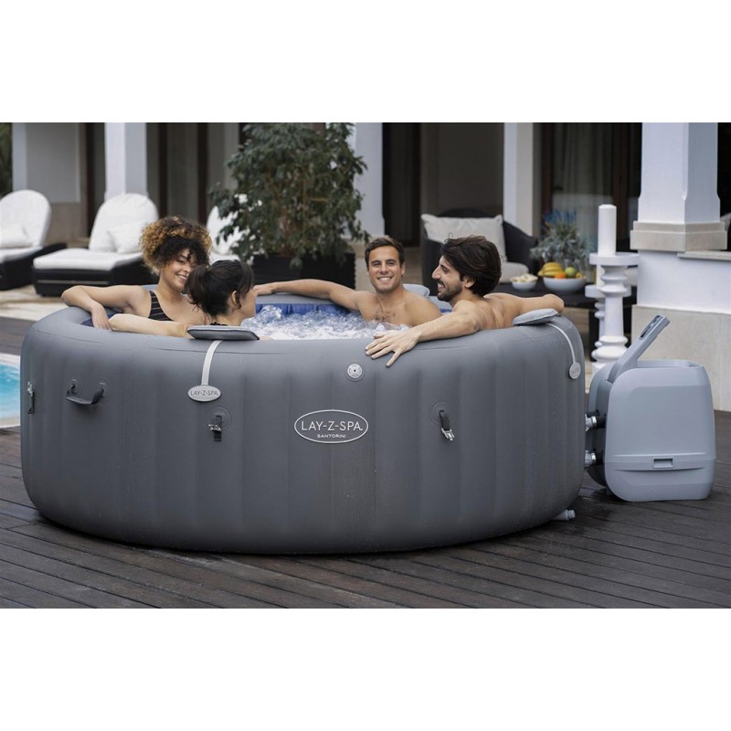 Po dlouhém dni není nic příjemnějšího než se ponořit do teplé, bublající vody přímo na vaší zahradě. Lay-Z-Spa Santorini HydroJet Pro poskytuje uklidňující masážní zážitek až pro 7 osob, a přitom se rychle a snadno nastavuje. Jednoduše připojte technologickou jednotku a sledujte, jak se nafoukne. Vnitřek vířivky tvoří krásnou modrou mozaiku. Barevné osvětlení ColorJet LED se 7 střídajícími se barvami. Relaxace po celý rok. Vířivý bazén je zkonstruován pro celoroční použití. Součástí je také integrované sedátko pro mimořádné pohodlí.