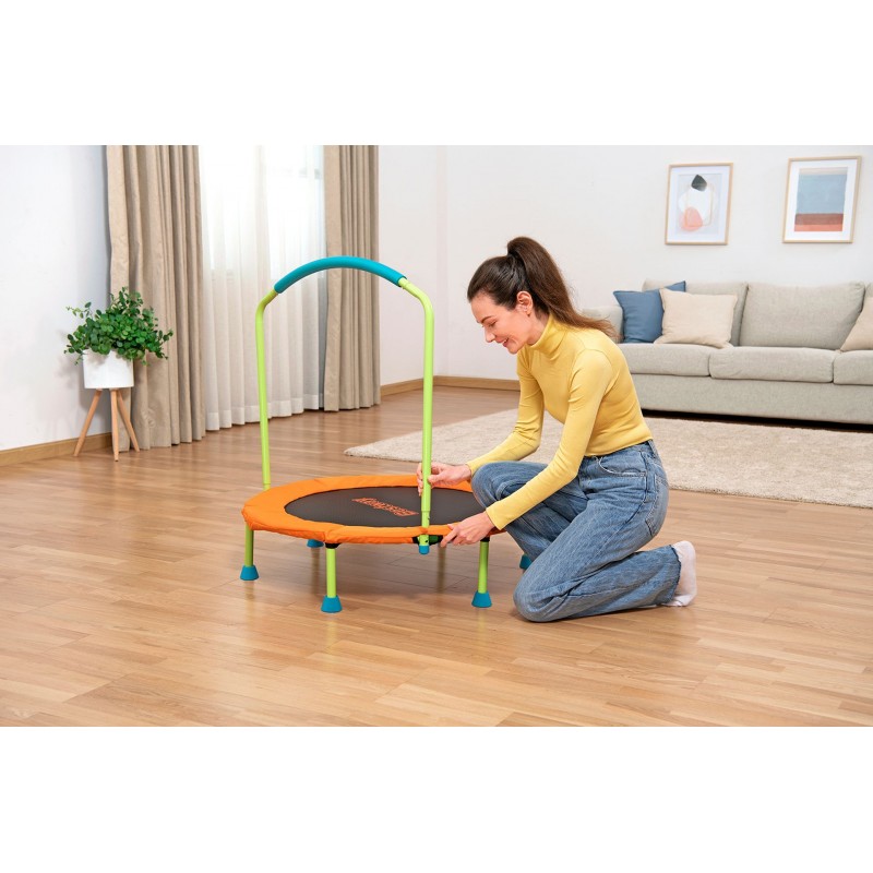 BESTWAY Wonderjump™ Trampolína nabízí bezpečnou a zábavnou formu pohybu pro děti. S kompaktní velikostí ⌀ 91 × 96 cm se perfektně hodí do dětských pokojů a malých prostor a umožňuje dětem aktivně se vyřádit a zlepšovat koordinaci, rovnováhu i motoriku – ideální pro domácí použití.