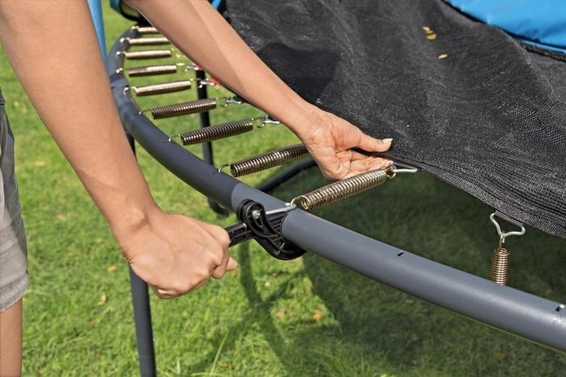 Konstrukce z pozinkované oceli s vypáleným práškovým lakem poskytuje maximální ochranu proti rzi a korozi. Materiály odolné proti UV záření zajišťují stálost barvy i tvaru i při dlouhodobém vystavení slunci. Přišitá ochranná síť bez mezer se vstupem na zip ve tvaru L s přezkami zvyšuje bezpečnost při používání. O výborný odraz a dynamiku skoku se stará 70 galvanizovaných pružin.