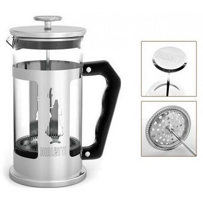 BIALETTI French Press konvička, 0,350 l, nerez 2170199314French press se vyznačuje důrazem na perfektní zpracování každého detailu. Kvalitní borosilikátové sklo a ušlechtilá nerez ocel v kombinaci se značkou Bialetti je zárukou skvělého zážitku z přípravy i pití kávy. Tuto konvici lze použít také na přípravu čaje či bylinkového nálevu.