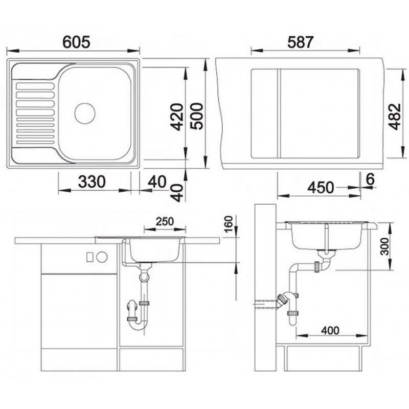 BLANCO set Tipo 45 S mini 3 1/2 nerez kartáčovaný 605 x 500 mm 516053 + TIVO baterie chrom 517599BLANCO Tipo 45 S Mini dřez nerezový včetně sifonu, nerez kartáčovaný 516053: