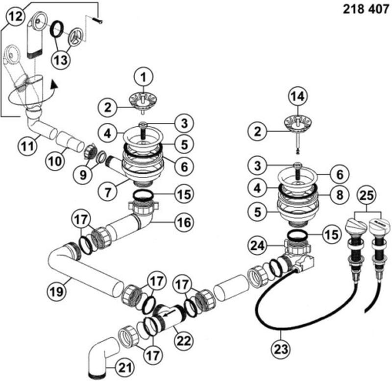 BLANCO sifon pro dřezy Metra 218407Kompletní sada s přepadem a excentrickým ovládáním.