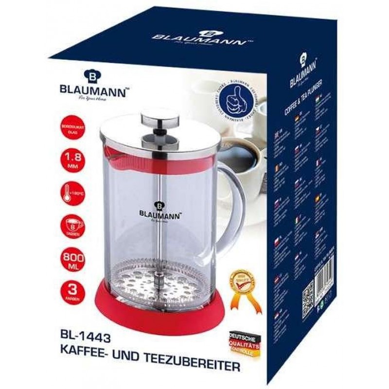 BLAUMANN French Press Konvička na čaj a kávu 350 ml, červená BL-1441