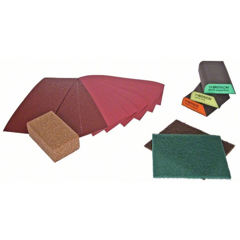 Sada pro ruční broušení je ideální volbou pro broušení širokého spektra materiálů. Nabízí řešení pro různé projekty včetně ručního broušení dřevěných materiálů, odstraňování zbytků barev, starých nátěrů a také broušení kovových a plastových povrchů. Tato sada obsahuje brusiva s různou zrnitostí a příslušenství, které umožňuje i použití za mokra. Brusné houby a brusiva z rouna jsou omyvatelné a tedy i odolnější. Díky různým tvarům lze brousit nejen ploché povrchy, ale také obtížně dostupné plochy a zakřivené obrobky.Obsah sady: