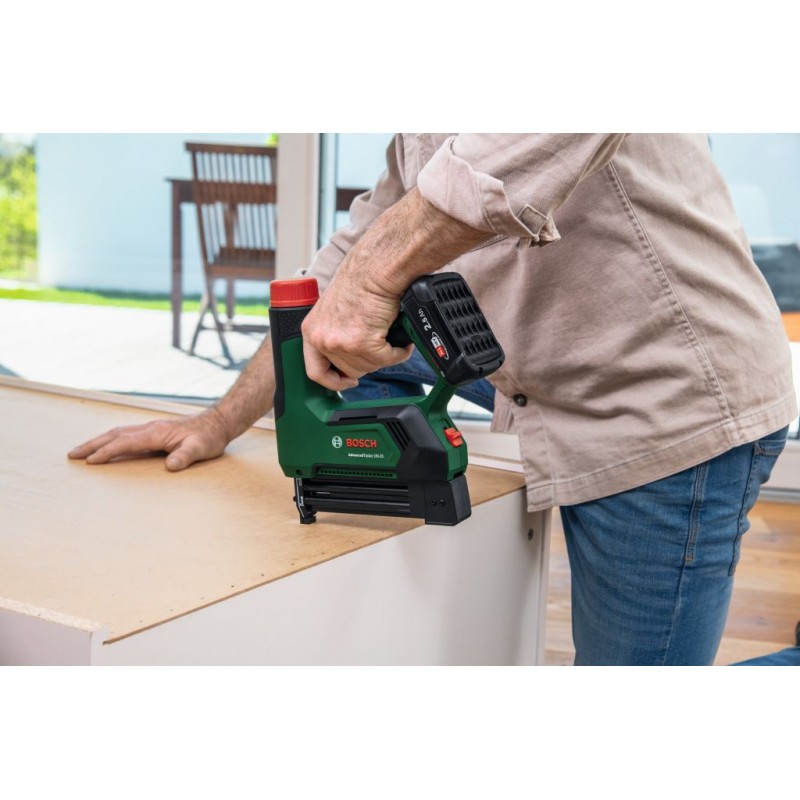AdvancedTacker 18V-25 je vaše řešení pro snadné upevňování. Díky akumulátorovému designu a funkci 2 v 1 je ideální na širokou škálu projektů, od montáží nábytku až po lištování a další. Tato pružinová sponkovačka pojme jak úzké korunkové sponky, tak hřebíky. 7stupňově nastavitelná síla a frekvence 30 úderů za minutu zajišťují přesné umístění do různých materiálů. Specializované vodicí nástavce, včetně odnímatelného distančního vedení a krytky na vedení, dále zvyšují přesnost. Systém Push + Release zaručuje optimální kontrolu během práce tím, že eliminuje samovolné spuštění. Ergonomická rukojeť, zásobník pro rychlé podávání, okénko pro sledování zásobníku, vestavěné pracovní LED světlo a indikátor akumulátoru umožňují pohodlné dlouhodobé používání. Pusťte se do práce s přiloženým startovacím balíčkem 1 000 sponek a 500 hřebíků. Toto nářadí patří do systému 18V POWER FOR ALL. Jeden akumulátor lze používat s veškerým nářadím 18V POWER FOR ALL.