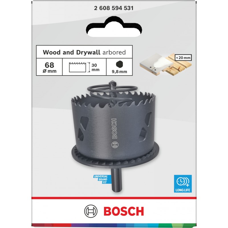 BOSCH Děrovka s adaptérem a záhlubníkem na dřevo a sádrokarton, 68 × 30 mm 2608594531