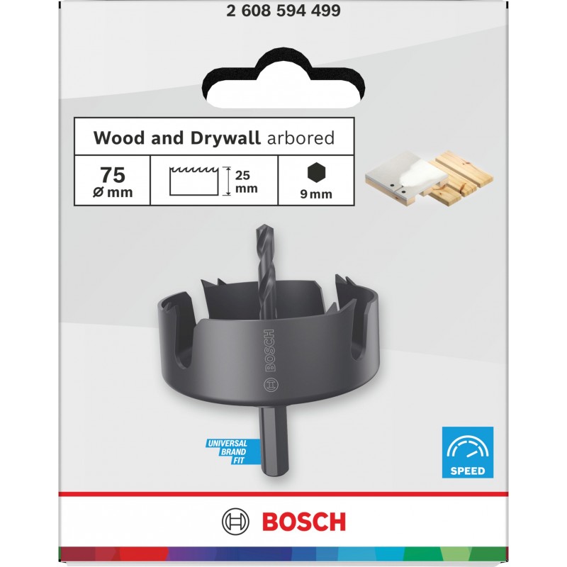 BOSCH Děrovka s adaptérem na dřevo a sádrokarton, 75 × 27 mm 2608594499