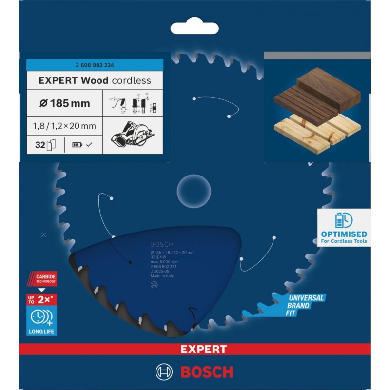 BOSCH EXPERT Wood cordless Pilový kotouč, 185 × 1,8/1,2 × 20 mm, T32 2608902234