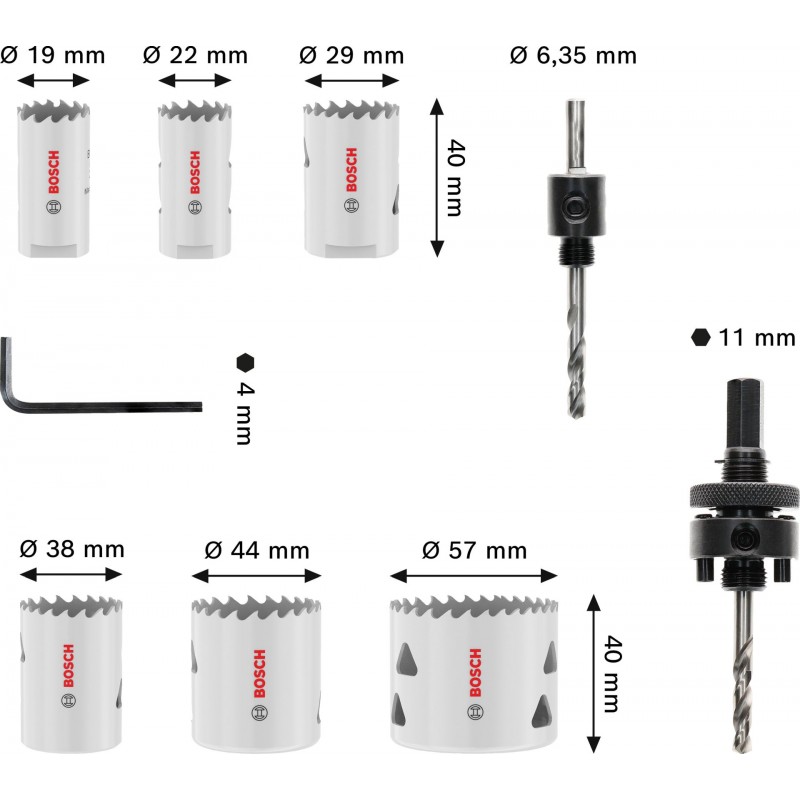 BOSCH Multi Material Sada děrovek se závitem, 19; 22; 29; 38; 44; 57 × 40 mm 2608594612