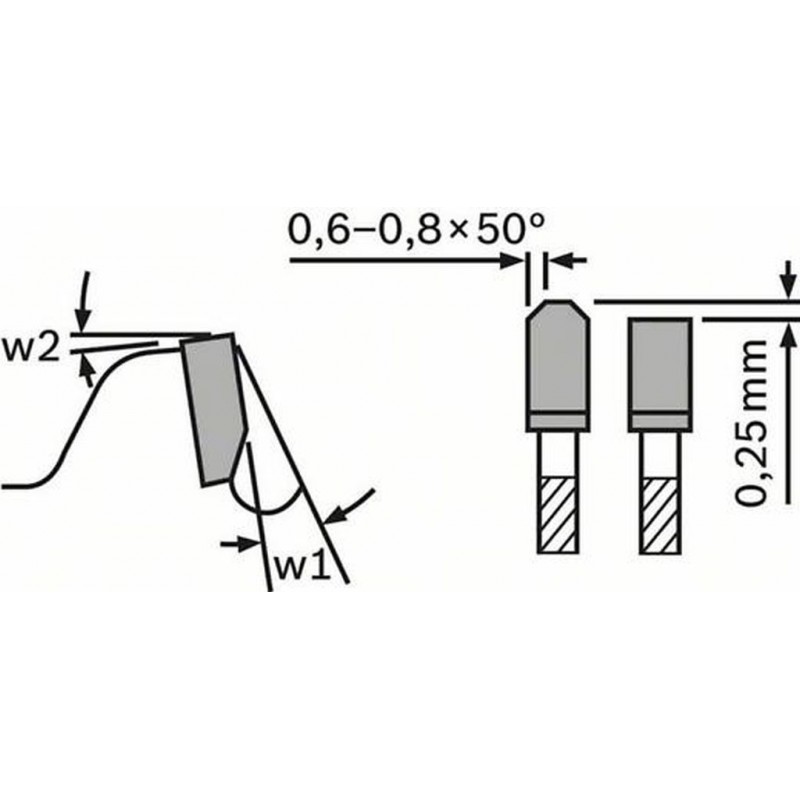 - Velmi tvrdé zuby z materiálu MicroteQ (vyrábí Bosch) z velmi jemných karbidových zrn maximalizují životnost a výkonnost