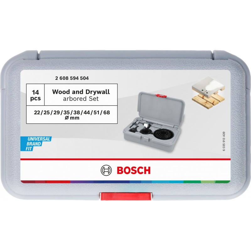 BOSCH Sada děrovek s adaptérem a pilotním vrtákem na dřevo a sádrokarton 2608594504