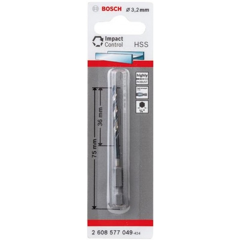 BOSCH Spirálový vrták s šestihrannou stopkou HSS 3,2 mm 3.2 x 36 x 75 mm 2608577049