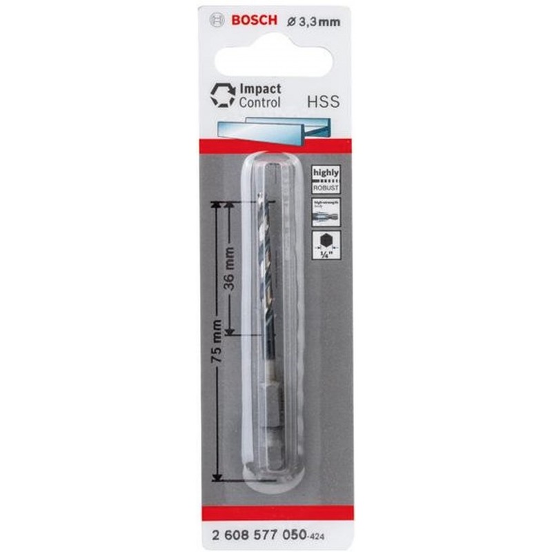BOSCH Spirálový vrták s šestihrannou stopkou HSS 3,3 mm 3.3 x 36 x 75 2608577050