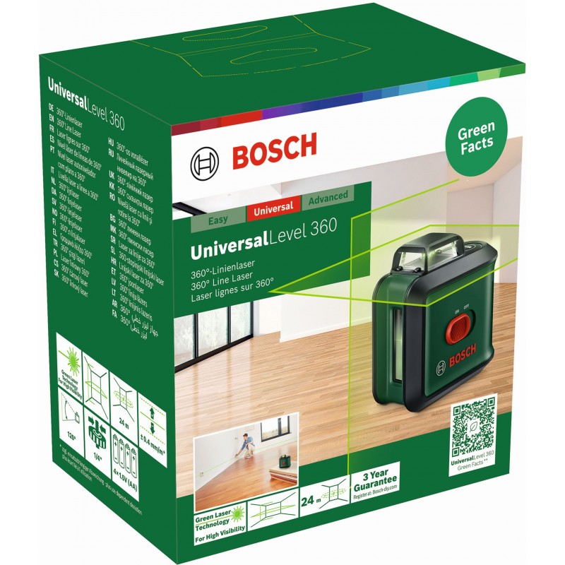 Čárový laser UniversalLevel 360 propojuje přesnost, všestrannost a komfort a poskytuje vynikající viditelnost pro vysoce přesnou nivelaci celé místnosti. Samonivelační projekce laserové čáry v úhlu 360° vodorovně a 120° svisle umožňuje komfortní a rychlé vyrovnání, technologie zeleného laseru poskytuje výrazně lepší viditelnost a zajišťuje komfortní práci i při velmi jasných světelných podmínkách. Plánujete konstrukci podhledů nebo záclonových kolejnic ve stejné výšce? Chcete vyrovnat objekty jako police a obrazy na stejnou úroveň? Plánujete kreativní obkladačskou práci? Pusťte se do toho a popusťte uzdu své kreativitě. Funkce náklonu vám také umožní práci s diagonálními liniemi.