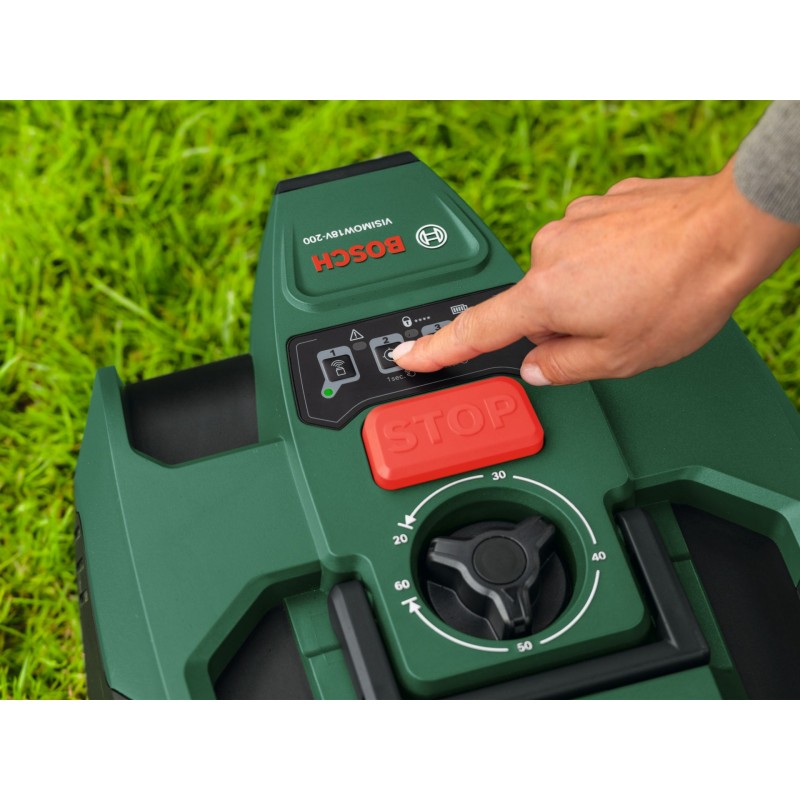 BOSCH VISIMOW 18V-200 je moderní robotická sekačka navržená pro automatické sečení trávníků až do 200 m2. Díky inteligentnímu systému SmartVision nevyžaduje instalaci obvodového vodiče ani složité infrastruktury. Stačí tři tlačítka a během několika sekund je připravena k provozu.