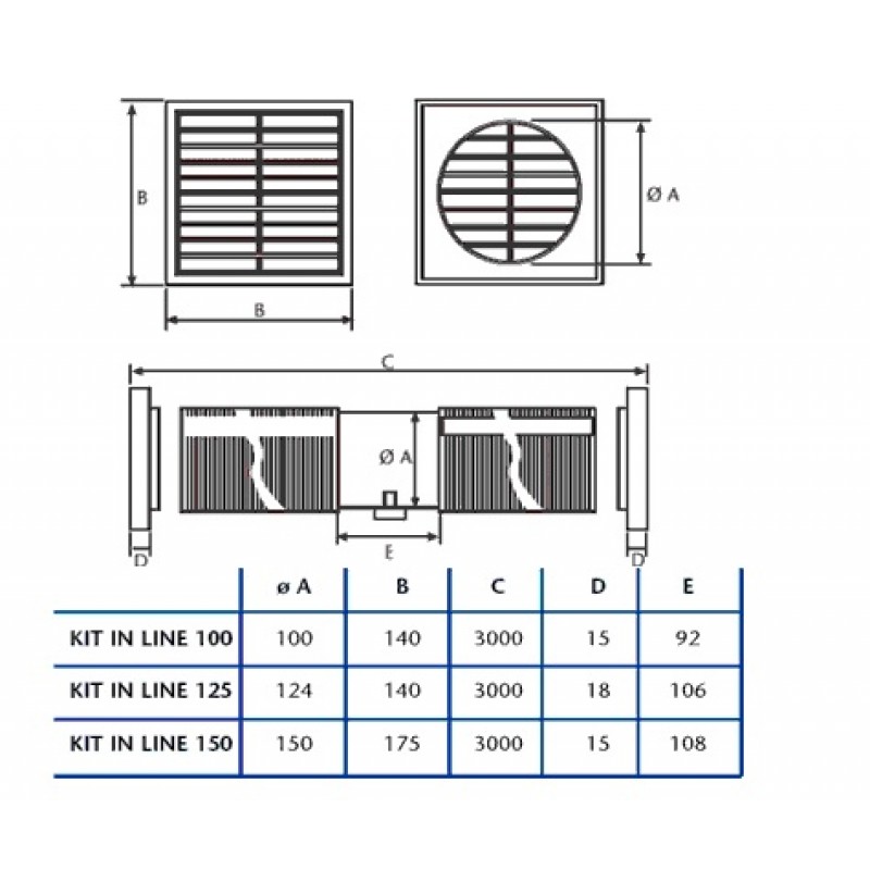CATA KIT IN-LINE 100 T ventilátor axiální 00711100Sada MT 100 T + držák + 2x mřížka + elastické potrubí 3 m.