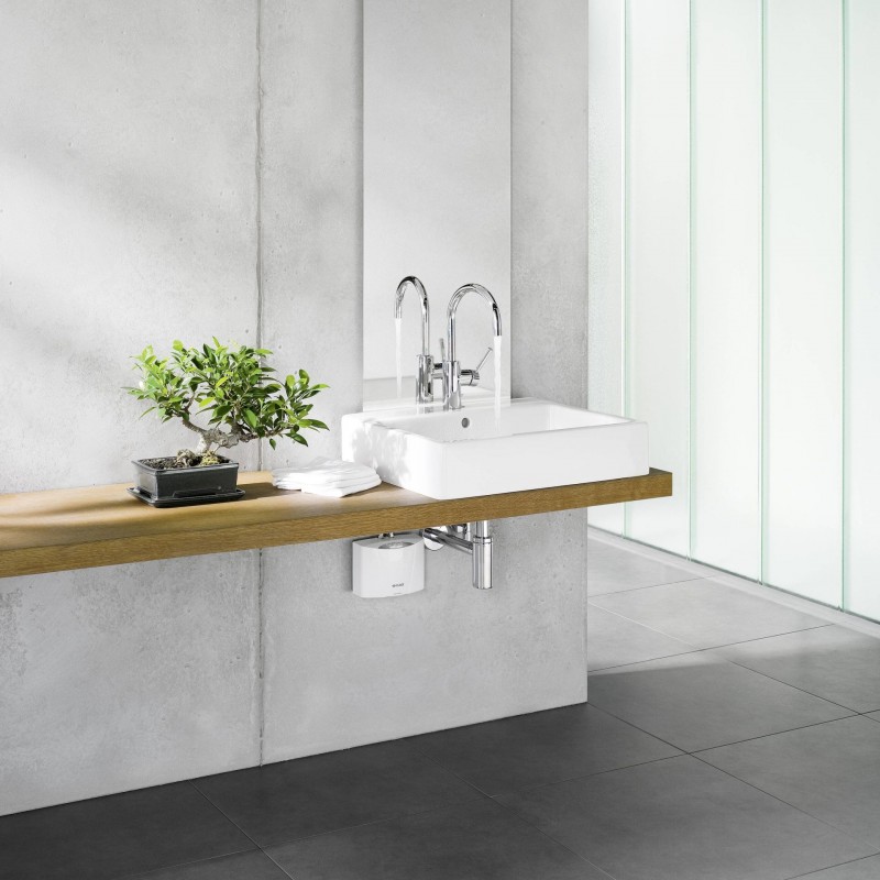 Voda je ohřívána přímo při průtoku bez zásobníku a bez pohotovostních ztrát. Elektronická regulace výkonu automaticky přizpůsobuje topný výkon aktuálnímu průtoku a vstupní teplotě vody a udržuje stabilní výstupní teplotu až do limitu výkonu přístroje. Instalace pod umyvadlem nebo dřezem minimalizuje tepelné ztráty v potrubí a snižuje spotřebu energie.