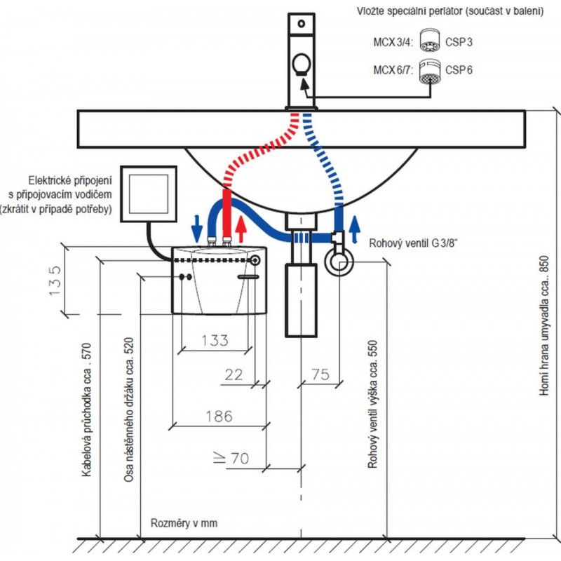 CLAGE MCX 7 je elektronicky řízený malý průtokový ohřívač vody určený k energeticky úsporné přípravě teplé vody přímo u umyvadla nebo kuchyňského dřezu. Ohřívač je určen pro tlakovou instalaci s běžnými armaturami.