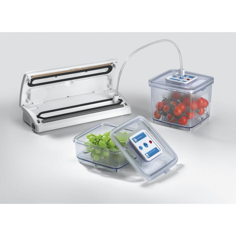 Pro maximální využití přístroje můžete volit a kombinovat: VB2203 - sada fólií pro vakuovaní (2 ks rolí, 22 cm x 3 m), VB2806 - sada fólií pro vakuovaní (2 ks rolí, 28 cm x 6 m), VD8100 - sada vakuovacích dóz (3 ks = 700, 1400 a 2000 ml), VD8200 - sada čtverhranných dóz pro vakuování a marinování (2 ks = 1000 a 2800 ml), VD8300 - sada vakuovacích zátek na víno (2 ks).