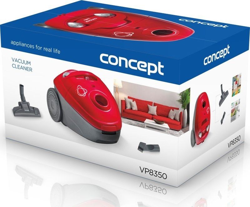 CONCEPT VP8350 BELLO sáčkový vysavač 700 W, červená vp8350Podlahový sáčkový vysavač s výkonem 700 W VP8350 Bello s HEPA filtrem 10 a štěrbinovou hubicí s prachovým kartáčkem v základní výbavě.