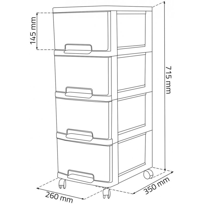 CURVER KNIT 4x10L šuplíková komoda 26x35x68cm krémová 00073-X64Plastová skříňka v designu KNIT (pletený vzor), která má čtyři úložné šuplíky o objemu 10L. Funkční skříňka umožňuje snadno uspořádat doplňky. Díky klasickému a elegantnímu designu jí lze umístit do koupelny, ložnice nebo šatny. Police zajišťuje ochranu do níž uložených předmětů před poškozením či znečištěním. Praktická kolečka umožňují tento kus nábytku libovolně přesouvat.