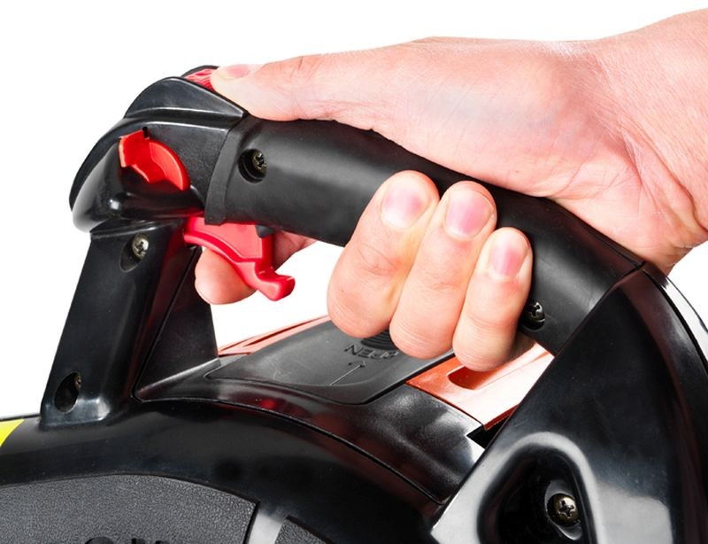 - Pogumovaná rukojeť s možností přepnutí plynu na stálý chod