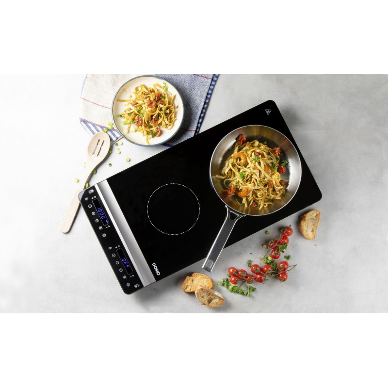 Vařič je vybaven dotykovým ovládáním s LED displejem, které umožňuje přesně nastavit teplotu, výkon i čas. Díky širokému rozsahu nastavení je ideální pro smažení, vaření, dušení i ohřev. Moderní sklokeramická deska zajišťuje snadnou údržbu a elegantní vzhled.