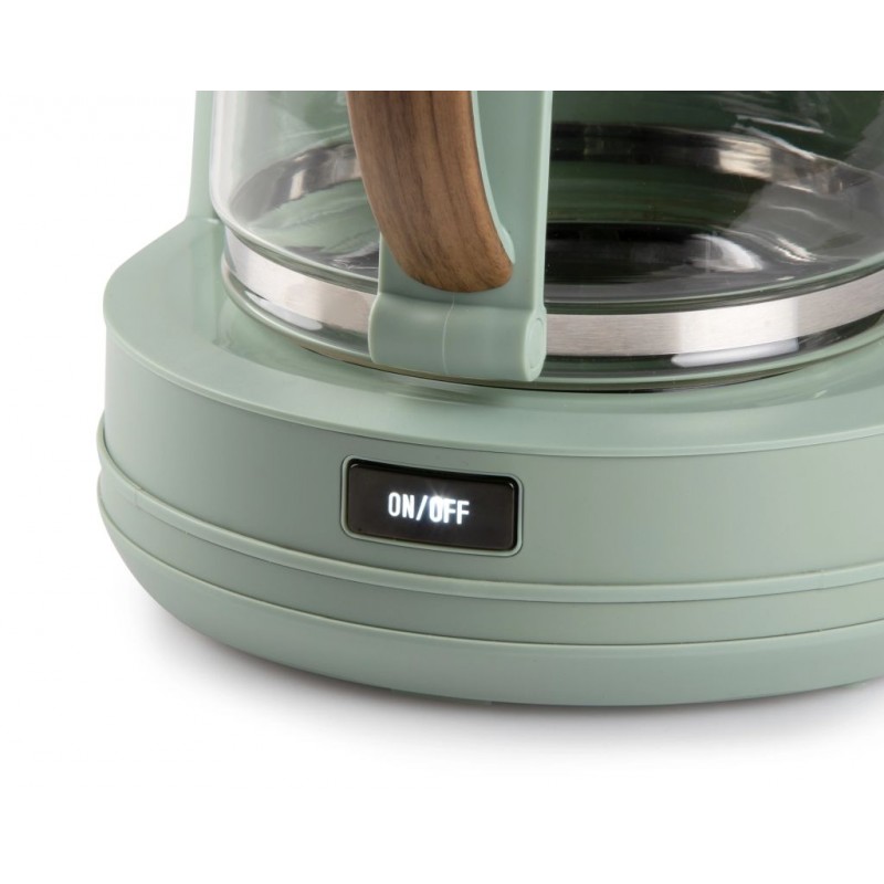 Překapávač DOMO DO755K z designové řady WOOD YOU spojuje moderní výkon s elegantním zeleným provedením a prvky v dekoru dřeva. Díky objemu 1,25 litru připravíte až 10 šálků kávy nebo čaje najednou – ideální pro domácnosti i kanceláře.