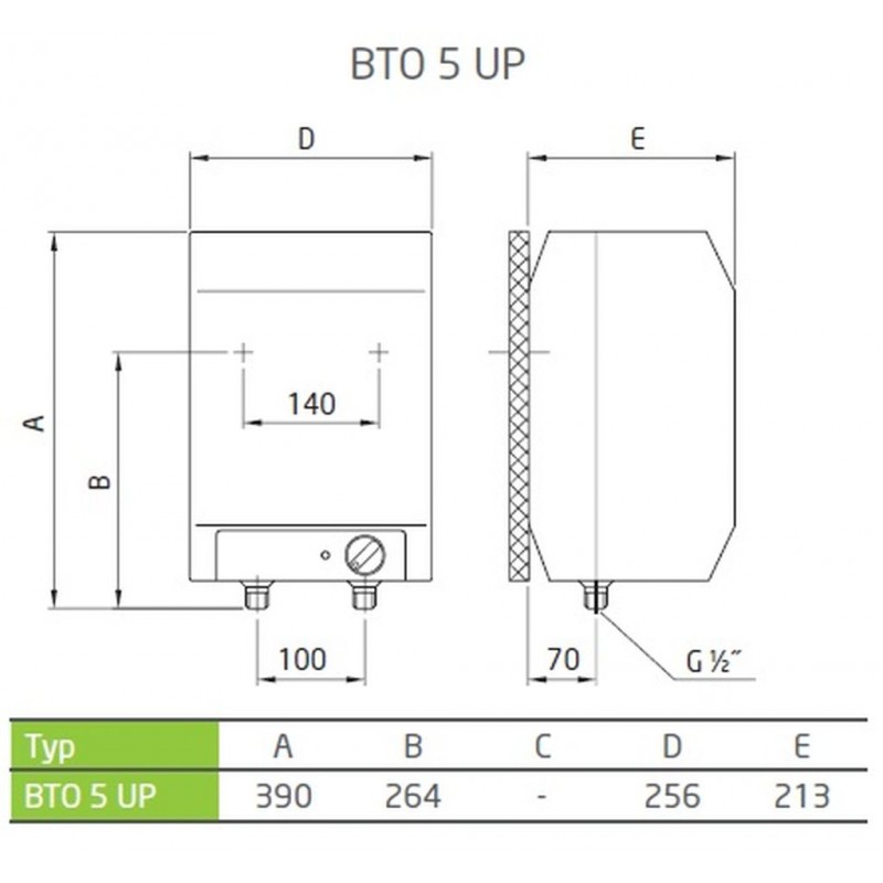 DRAŽICE BTO 5 UP Ohřívač beztlakový elektrický 105313200Závěsné, svislé – umístění nad umyvadlo