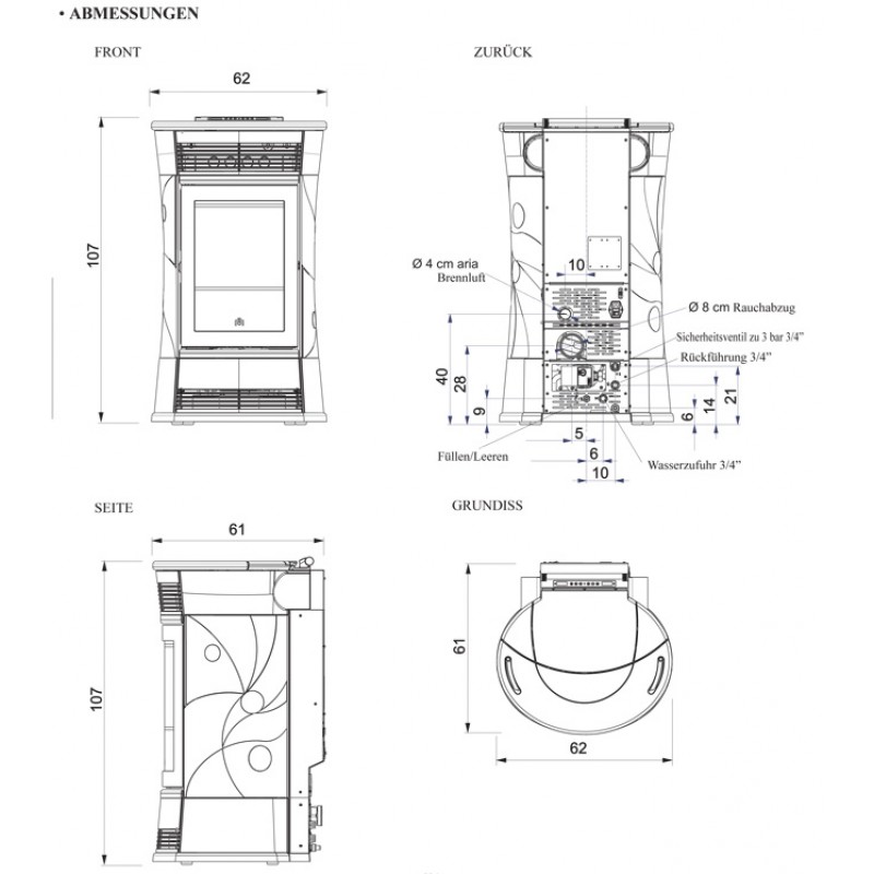 EDILKAMIN BIJOUX teplovodní kamna na pelety, 15kW, bílá 751140Provedení: boky, top a vložky smetanová bílá keramika