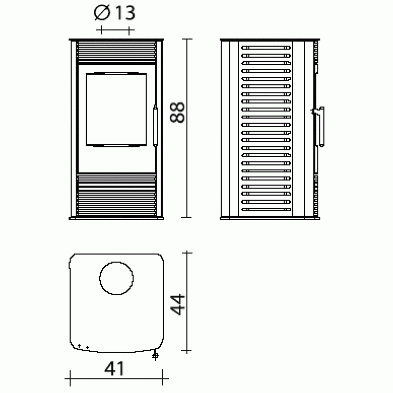 EDILKAMIN FUNKY teplovzdušná krbová kamna na dřevo bordó 641670Krbová kamna Funky jsou určena k lokálnímu vytápění objektu prostřednictvím proudění teplého vzduchu. Výkon krbových kamen je max. 8 kw, předaného do prostoru prostřednictvím tepelného proudění vzduchu mezi plášti a sálání skrz sklo topeniště. Plášť je z oceli v barvě antracit nebo keramiky v barvě bordo a béžová.