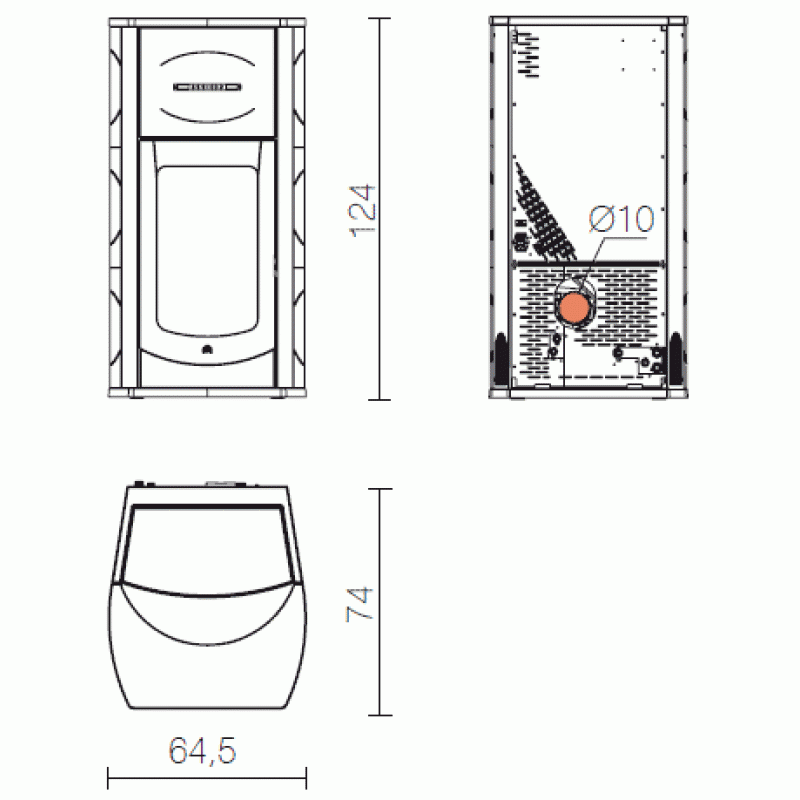 EDILKAMIN MONTREAL krbová kamna na pelety, bordó 656030Litinové průčelí a hliníkový výměník, keramické obložení v barvách ambra, bílá kořeněná a červená. Vybaveno systémem Leonardo. Dálkové ovládání v ceně. Ovládací panel s displayem, časový programátor, automatická diagnostika, automatické čištění spalovacího kelímku, možnost ovládání přes GSM, automatická regulace spaování, Comfort Clima, 3C System.