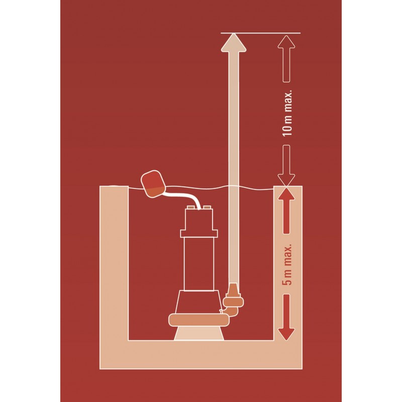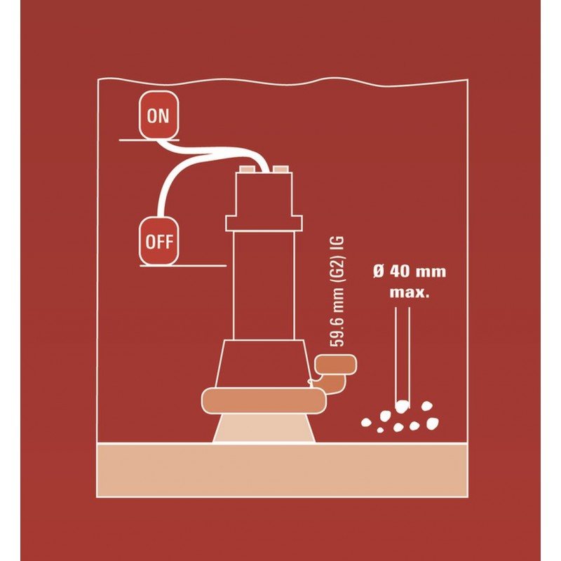 Plynule výškově nastavitelný plovákový spínač dovoluje možnost volby mezi nepřetržitým provozem a přednastavenou výškou hladiny pro zapnutí a vypnutí. Hadicová přípojka G2 je určena pro 2“ hadice (cca 50,8 mm). Praktické držadlo umožňuje pohodlnou přepravu kalového čerpadla.