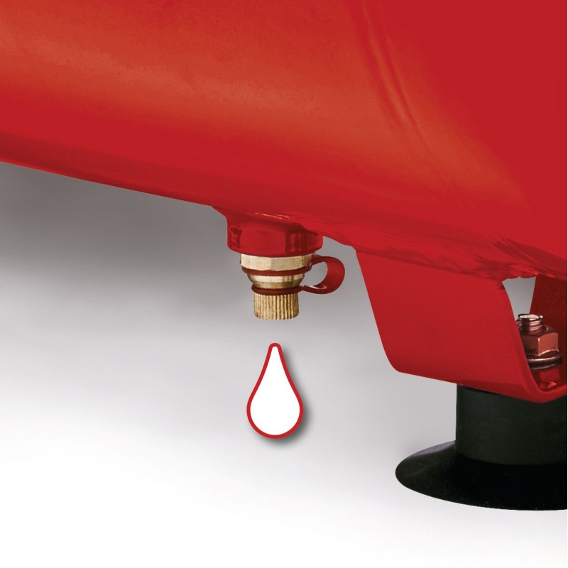 Díky zpětnému a pojistnému ventilu je zajištěna maximální bezpečnost uživatele. Kondenzát lze ze vzdušníku vypustit pohodlně a čistým způsobem prostřednictvím odvodňovacího kohoutu. Noha tlumící vibrace zabraňuje otřesům a snižuje hluk. Držadlo pro přepravu a dvě pogumovaná kola zajišťují rychlou mobilitu a snadnou přepravu. Na odolný vzdušník je poskytována záruka 10 let proti prorezavění.