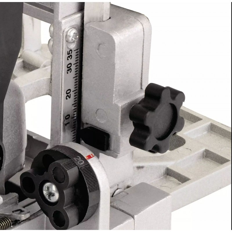 Pomocí 3stupňového nastavení hloubky lze nastavit frézovací hloubky až do 14 mm pro výrobu různých dřevěných spojů.