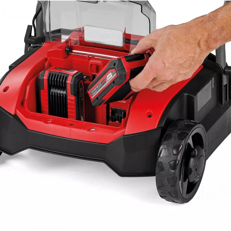 Tento aku vertikutátor/provzdušňovač GC-SC 18/28 DS Li-Solo lze provozovat buď s jedním 18V baterií, nebo jej lze vybavit dvěma bateriemi Power X-Change pro delší dobu provozu díky dvěma integrovaným bateriovým slotům. Díky této funkci Double Slot se napájení automaticky přepne na druhou, plně nabitou baterii, jakmile se první baterie vybije. Zařízení vždy automaticky vybere slot, do kterého je vložena plně nabitá baterie.