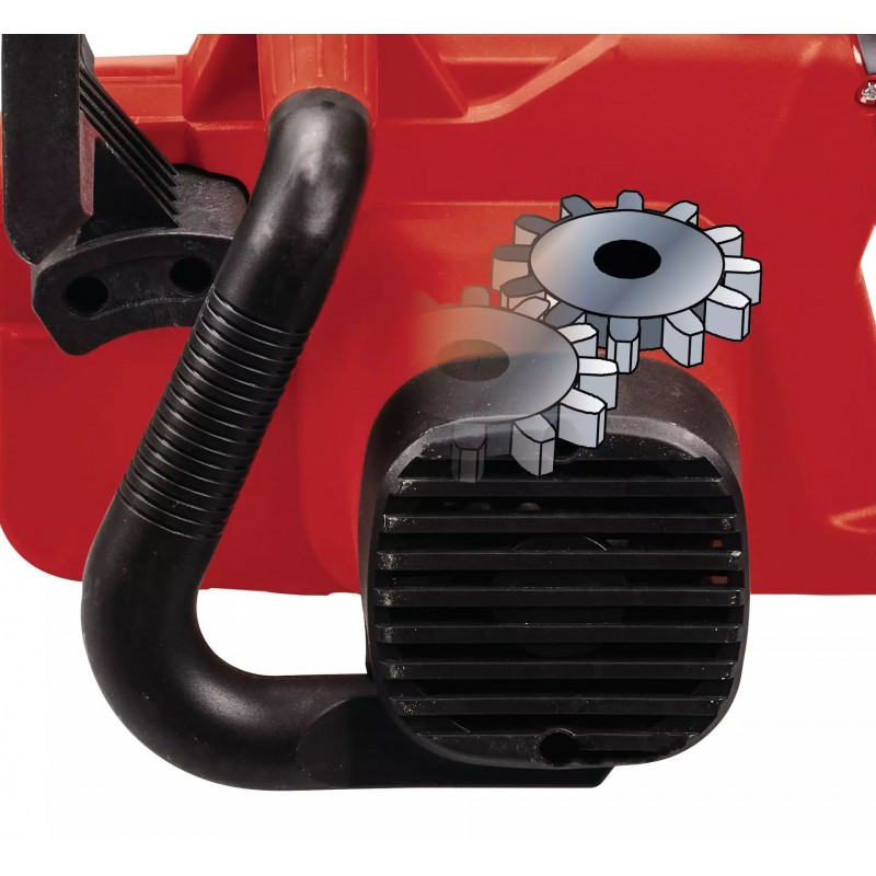 Řetěz pily lze napnout bez námahy a bez použití dalšího nářadí otáčením napínacího šroubu řetězu, dokud není dosaženo potřebného napnutí řetězu, a jeho následným zajištěním. Správné napnutí řetězu je nezbytné pro dokonalé výsledky řezání.