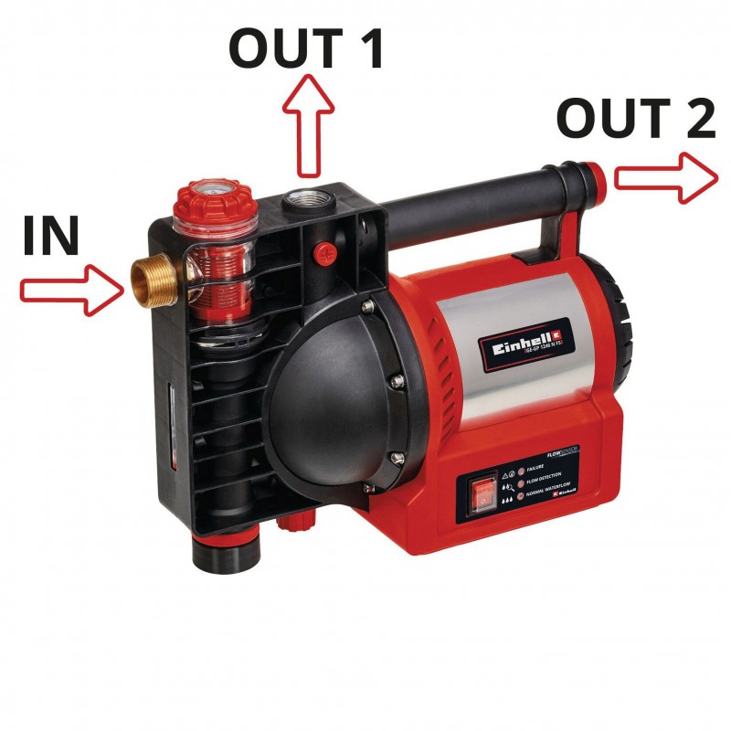 Se silným 1 200 W motorem čerpá zahradní čerpadlo Einhell až 4 600 litrů čisté vody za hodinu z hloubky až 8 metrů. Průtokový senzor kontroluje průtok vody a pomocí LED diod indikuje, zda probíhá správně. Tepelná ochrana proti přetížení automaticky vypne čerpadlo při přehřátí motoru. Ochrana proti chodu nasucho a ochrana proti opaření rovněž vypnou čerpadlo, pokud přestane dostávat vodu a hrozí přehřátí motoru.