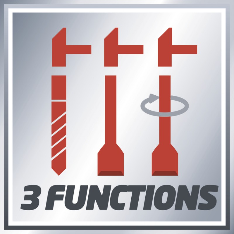 - 3 funkce: Vrtání s příklepem, sekání s fixaci a bez fixace