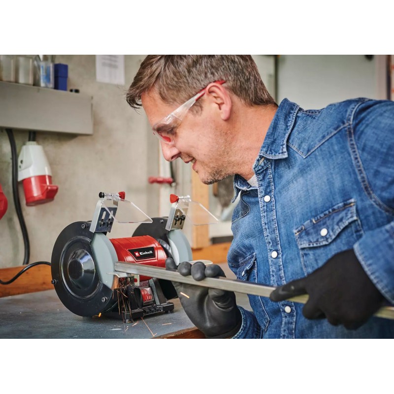 Dvoukotoučová bruska Einhell TC-BG 150 je perfektní základní vybavení pro každého hobby kutila. S výkonem 150 W a volnoběžnými otáčkami 2 980 ot./min lze provádět různé brusné práce. Ať už broušení a leštění obrobků z kovu, plastu a dřeva nebo ostření nůžek, nožů, čepelí, vrtáků, fréz či sekáčů – s touto bruskou jste připraveni na každou úlohu.