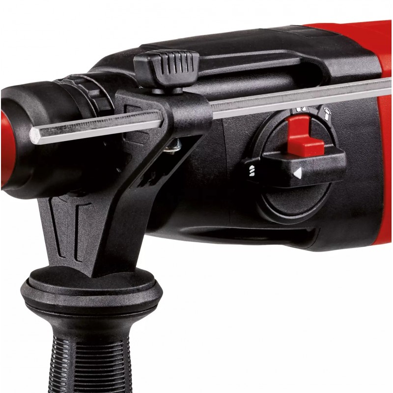 Rotační kladivo TC-RH 620 4F Kit se používá při náročných pracích: při práci s nepoddajným materiálem, jako je kámen a beton. Rotační kladivo je ideálním základním modelem a kombinuje výkon s kompaktním designem. Díky své nízké hmotnosti je ideální pro flexibilní použití - dokonce i nad hlavou. Einhell TC-RH 620 4F Kit je výkonné univerzální kladivo se čtyřmi funkcemi: vrtání, vrtání s příklepem a sekání s upevněním i bez něj. Příklepové impulzy doslova „opotřebovávají“ materiál, zatímco břit se do materiálu zažírá rotačním pohybem a vylamuje ho. Polohový spínač poskytuje impulsy pro všechny funkce a pneumatický příklepový mechanismus zajišťuje mimořádně dobrý pohon. Příjemnou a snadnou práci zajišťuje aretace nepřetržitého chodu. Robustní držák nástrojů SDS-Plus je poloautomatický a rychlostní elektronika umožňuje práci orientovanou na materiál a aplikaci. Robustní, masivní kovový hloubkový doraz vrtáku je plynule nastavitelný. Vrtací kladivo se pohodlně používá díky ergonomické rukojeti s měkkým držadlem Softgrip. Součástí balení jsou 3 vrtáky a ploché sekáče v praktickém přepravním a skladovacím kufříku E-Box Basic.