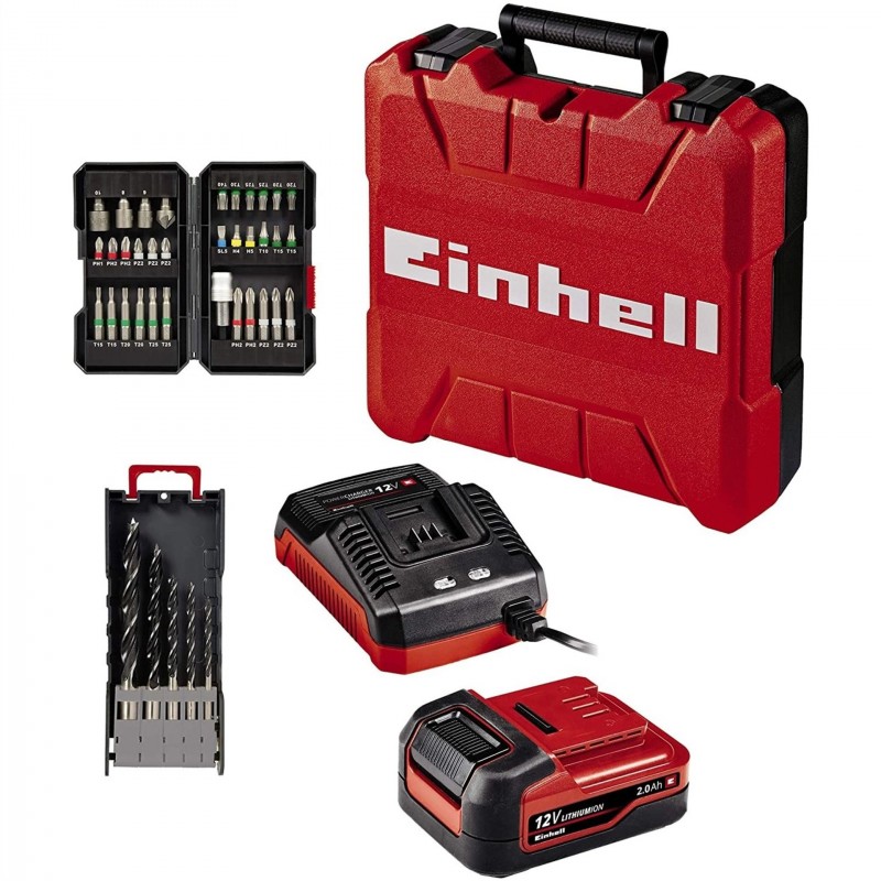 Aku vrtačka/šroubovák Einhell TE-CD 12/1 3X-Li +39 (1×2,0Ah) je uživatelsky přívětivý a výkonný pomocník, jehož 12V akumulátor poskytuje plný točivý moment 30 Nm na upnutý nástroj. Díky výkonné dvourychlostní převodovce je tento univerzální multifunkční nástroj vhodný pro silné vrtání i vysokorychlostní šroubování. Maximální flexibilitu poskytuje odnímatelné jednoruké sklíčidlo 10 mm. Elektronická regulace otáček zajišťuje optimální přizpůsobení každému materiálu a aplikaci. Ergonomický design a Softgrip umožňují pohodlné držení i při náročných projektech. Součástí dodávky je 90° úhlový nástavec pro šroubování a vrtání a excentrický nástavec pro práci v rozích a blízko hran. Úhlový nástavec a sklíčidlo lze kombinovat pro 90° vrtání. Produkt je dodáván s praktickou 34dílnou sadou bitů a pěti vrtáky do dřeva. Pro optimální práci v tmavých prostorách je vrtačka vybavena LED světlem. Díky moderní Li-ion technologii s nulovým samovybíjením je vždy připravena k použití. Produkt je dodáván v praktickém kufru E-Box spolu s jednou 2,0Ah baterií a 45min nabíječkou.