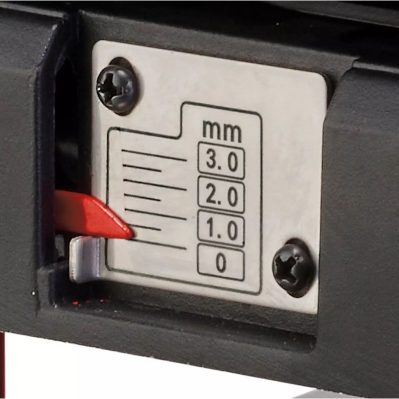 Ruční klikou lze nastavit maximální úběr pro hoblování až do tloušťky 3 mm. S šířkou otvoru 330 mm a výškou otvoru 153 mm je hoblík vhodný pro rychlé hoblování tloušťky s rychlostí vkládání 8,4 m /min.