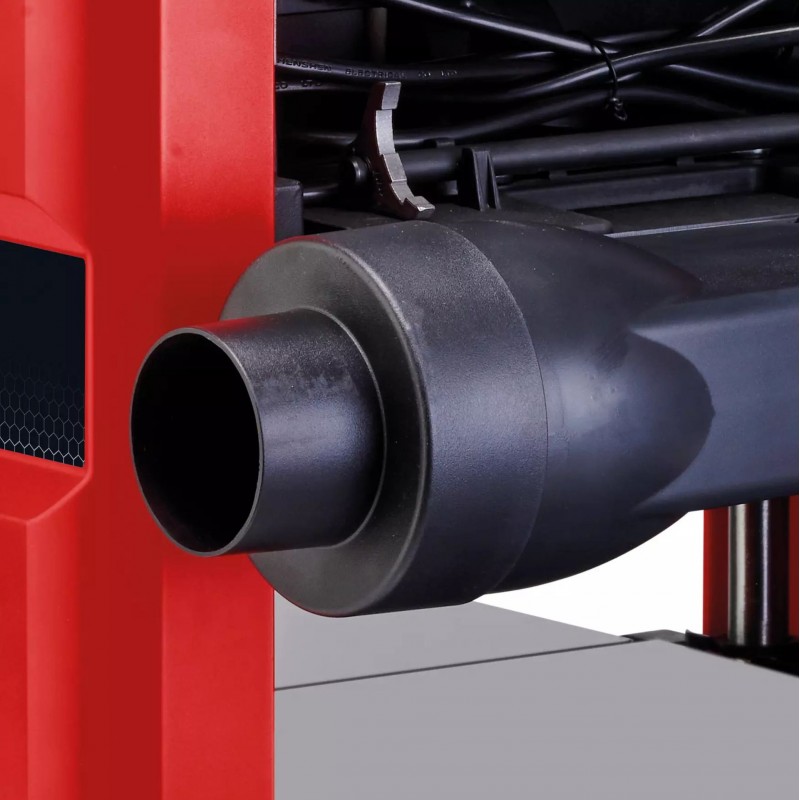 Einhell TE-SP 330 Stacionární hoblík je velmi pevná, stabilní a torzně tuhá čtyřsloupcová konstrukce s výkonem 1 800 wattů a otáčkami nožového hřídele 10 000 otáček za minutu. Díky svému vysokému výkonu udržuje stroj neustále vysokou rychlost otáček hřídele, čímž zajišťuje optimální výsledky hoblování pro všechny typy dřeva. Hoblík je vybaven dvěma ostrými oboustrannými hoblovacími noži v kvalitě HSS, zámkem hoblovací jednotky a robustním odnímatelným stolem z nerezové oceli, díky čemuž vždy schopen zajistit optimální výsledky při hoblování na tloušť s rychlostí vkládání 8,4 m /min. Stabilní sklopný stůl je lehce nastavitelný. Hoblovka je vybavena ruční klikou pro plynulé nastavení tloušťky hoblování se stupnicí. Nastavený úběr hoblovky do max. 3 mm lze kontrolovat pomocí snímače s displejem. Odsávací adaptér O 100 mm pro připojení k velkým odsávacím systémům zajišťuje čisté pracoviště.