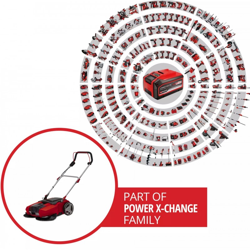 Akumulátorový mechanický zametač Einhell TE-SW 18/610 Li-Solo, člen rodiny Power X-Change, je výkonný, spolehlivý a flexibilní. Všechny vysoce kvalitní baterie PXC v této řadě lze kombinovat s jakýmkoli systémovým zařízením. Baterie a nabíječka jsou k dispozici samostatně, například jako praktická startovací sada. Akumulátorový zametač vyžaduje k provozu jednu 18 voltovou baterii. Zametání příjezdové cesty nebo chodníku může být zdlouhavé – ale nemusí to tak být. Akumulátorový mechanický zametač pomáhá při zametacích pracích a umožňuje vám zametat bez námahy pomocí akumulátorového pohonu kartáčů a motoru. Velkoplošné čištění až 1 800 m2 za hodinu díky šířce zametání 610 mm usnadňuje udržování čistoty velkých nádvoří. Akumulátorový mechanický zametač umožňuje dosáhnout každé hrany s kartáčem umístěným na boku. Okraj je odnímatelný pro zametání velmi nerovných oblastí. Vypínač je snadno dosažitelný, protože je na samotné rukojeti. Řiditelná kolečka zajišťují snadnou manipulaci bez ohledu na povrch. Akumulátorový zametač se snadno přepravuje díky svému ergonomickému tvaru a velkým kolečkům. Akumulátorový zametač má nastavitelná řídítka pro snadné skladování. Součástí je vysoce kvalitní 20 litrová nádrž na nečistoty, kterou lze bezpečně odložit. Rozsah dodávky nezahrnuje dobíjecí baterii ani nabíječku PXC.
