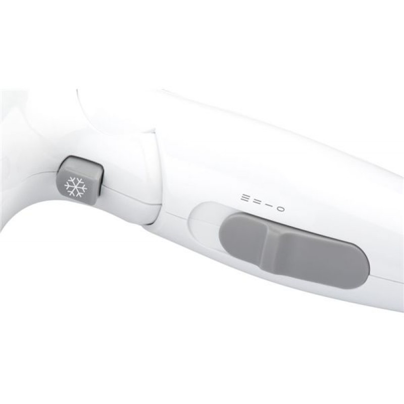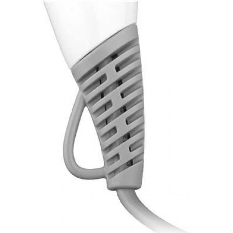 Fén má praktický tvar i design a výhodou je ergonomicky tvarovaná a sklápěcí rukojeť, se kterou je velmi skladný. Díky závěsnému poutku je ihned připraven k použití a zásluhou cestovního pouzdra bude k službám i na dovolené. Jeho příkon je 1400 W a nepostrádá bezpečnostní ochranu proti přehřátí.