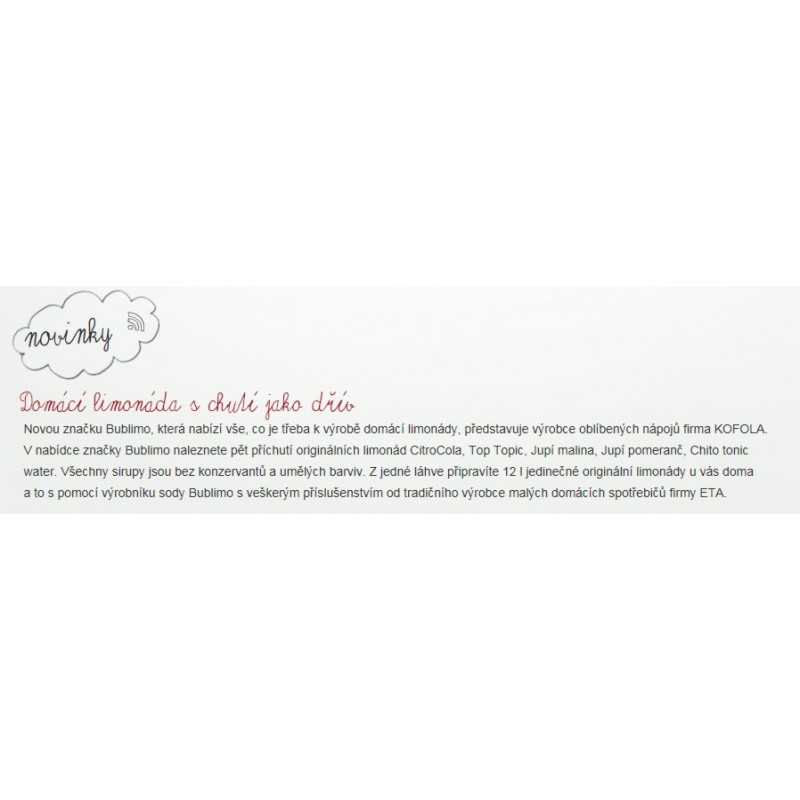 * SIRUPY Bublimo - Speciální značkové sirupy pro domácí přípravu limonády ve výrobnících sody s nezaměnitelnou chutí.